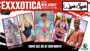 Sara Jay is quoted as saying: “WydeSyde is having another great year so it’s awesome to get out and meet the fans who support us at places at Exxxotica. The New Jersey show is usually a huge event. You can expect the Wyde Syde booth to be a ton of fun. Come out and say hello to me, Karen, E. Bunnz, Lila and Don!